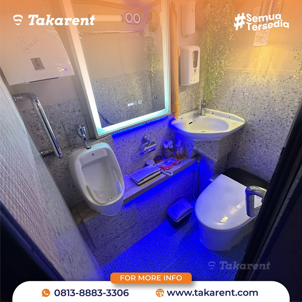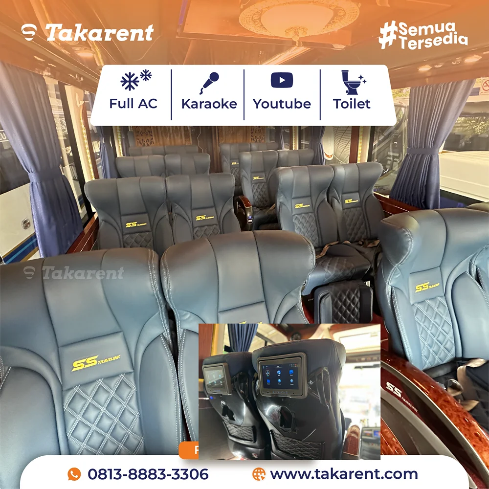 • Tersedia toilet di dalam bus, praktis untuk perjalanan jauh
