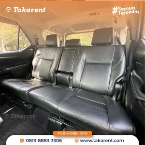 Dengan unit Toyota Fortuner dari Takarent, kamu akan mendapatkan kenyamanan maksimal, baik sebagai pengemudi maupun penumpang. Suspensinya halus, mesin selalu dalam kondisi sehat, dan kabinnya dirawat dengan baik untuk memastikan perjalanan tetap nyaman setiap saat.